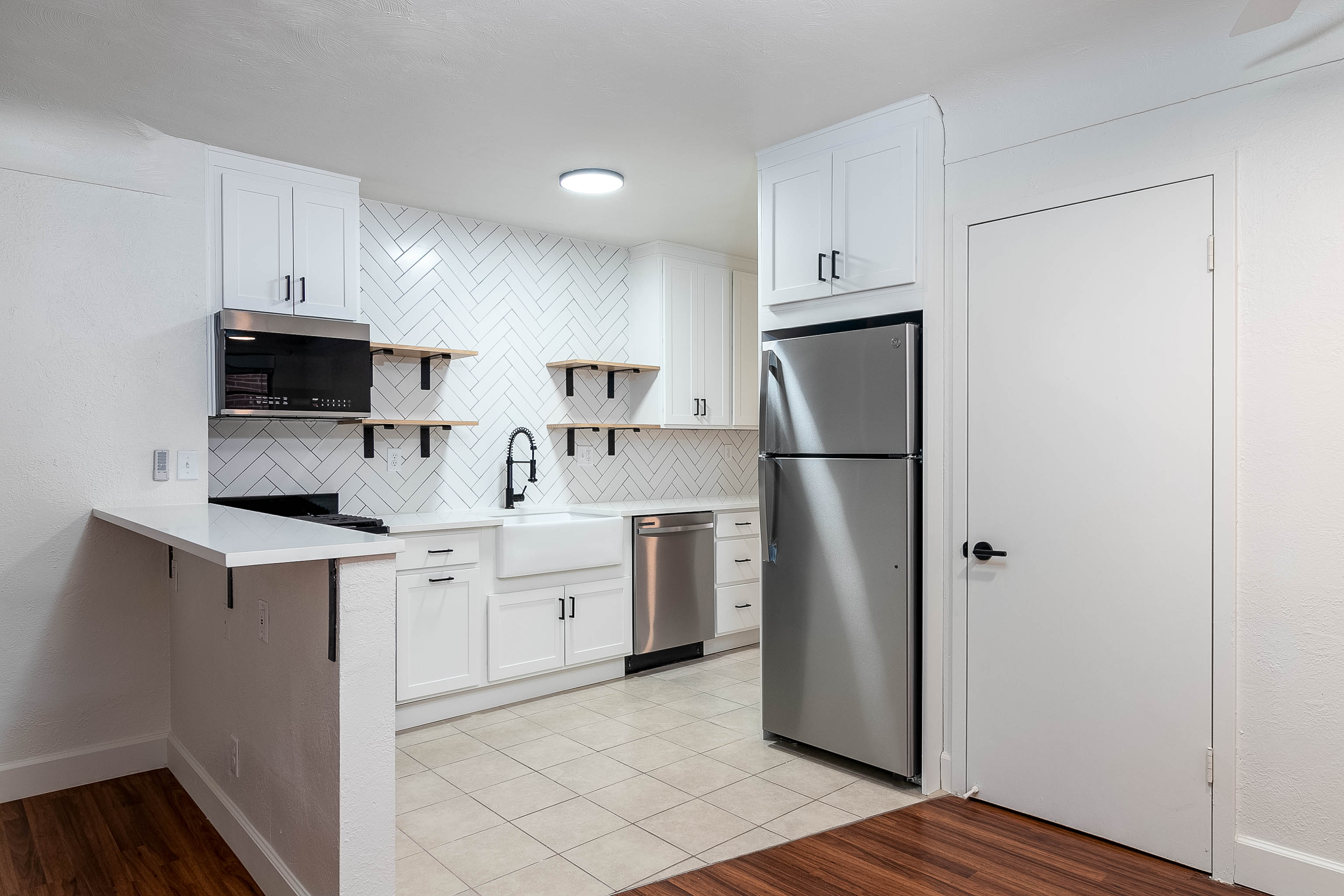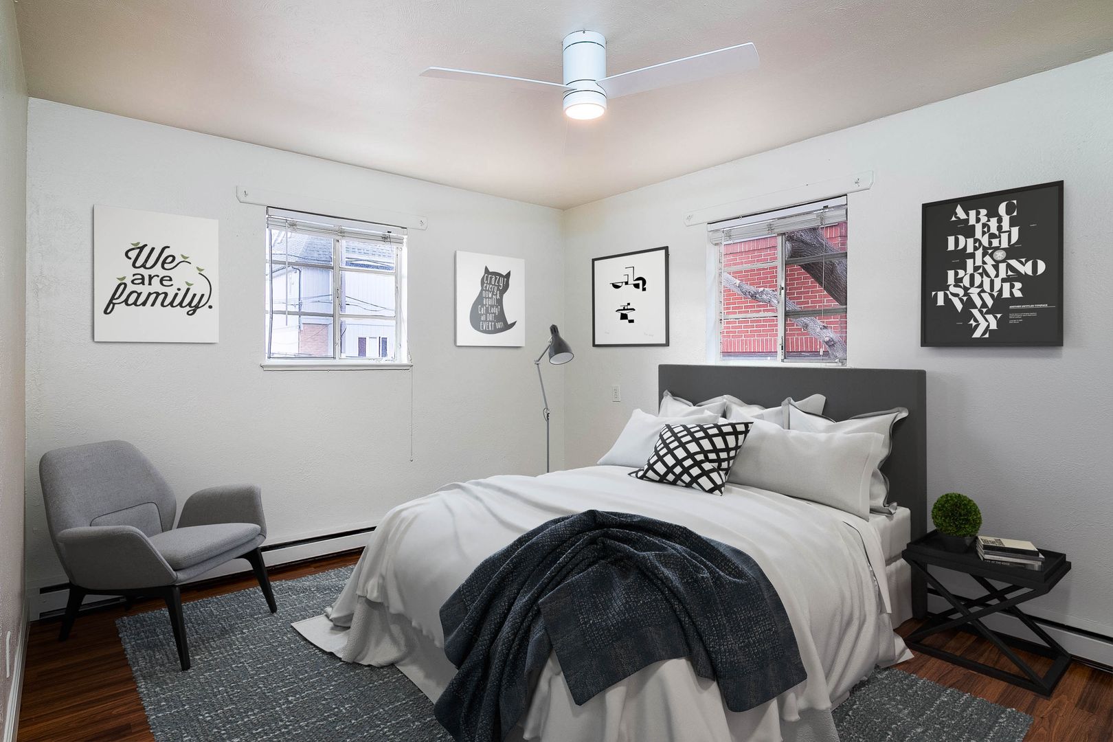 Bright, quiet, fully renovated 1 bedroom apartment! Off-street parking available! Blending vintage charm with modern finishes, units boast updated kitchens with stainless steel appliances and modernized bathrooms! You’ll enjoy an open living concept, top-of-the-line soft-close cabinets, quartz counters, farmhouse sinks and the convenience of a dishwasher! Ample in unit storage and closet space for all your Colorado gear! On-site parking and storage upon request and availability!